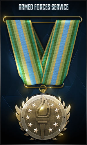 Armed Forces Service Medal Awarded to members with more than 100 days in clan. Medal is awarded Automatically on the 100th day. |